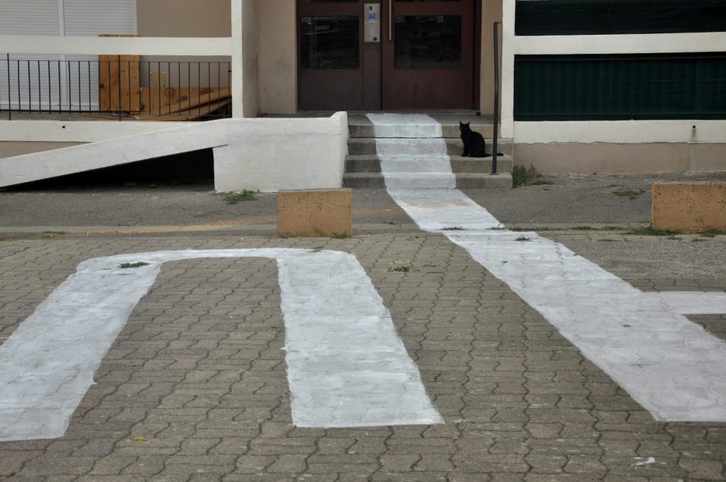 le mot HUTTE en géant sur la Place du Dr Appy.